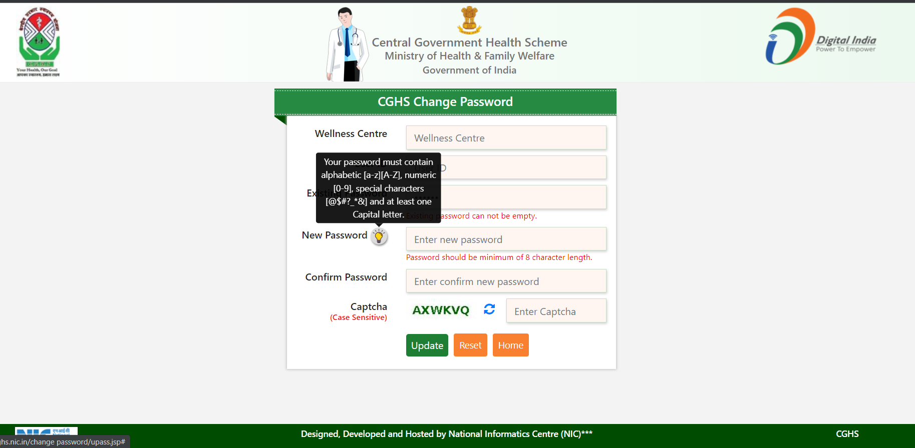 CGHS dumb password rule screenshot