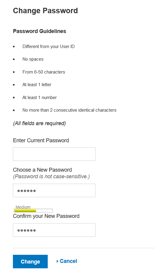 - Allows for a minimum password length of 6 characters