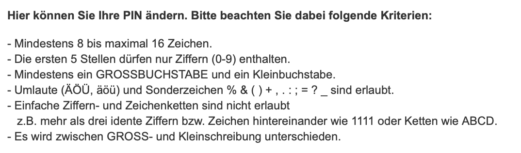Easybank (Austrian direct bank) dumb password rule screenshot