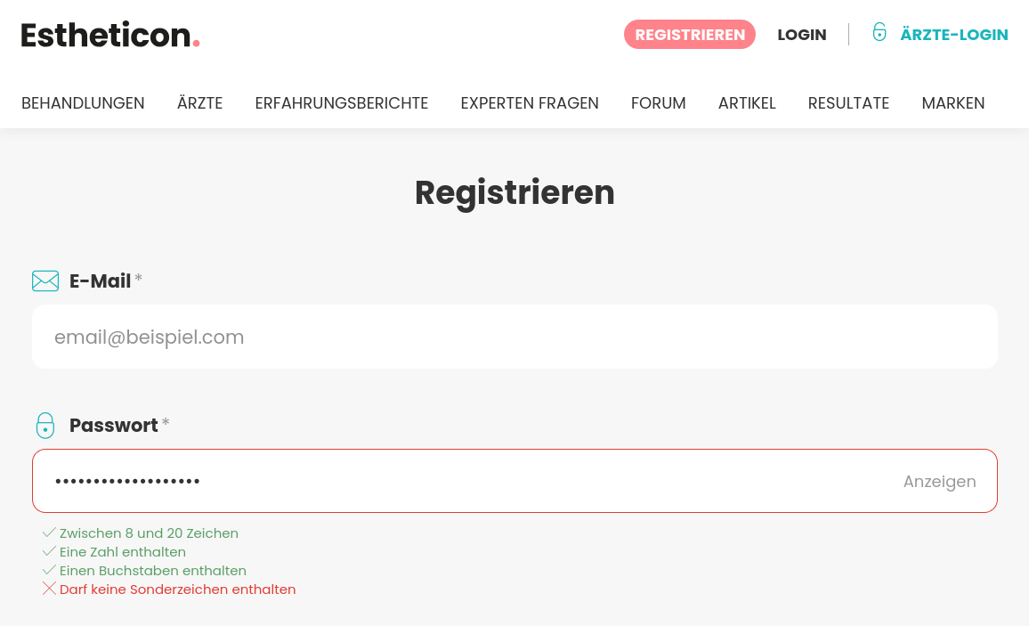 At least 8 characters but limited to 20 characters at max