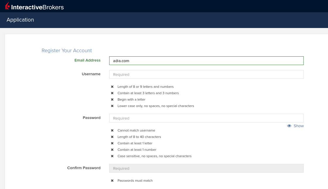 Interactive Brokers dumb password rule screenshot