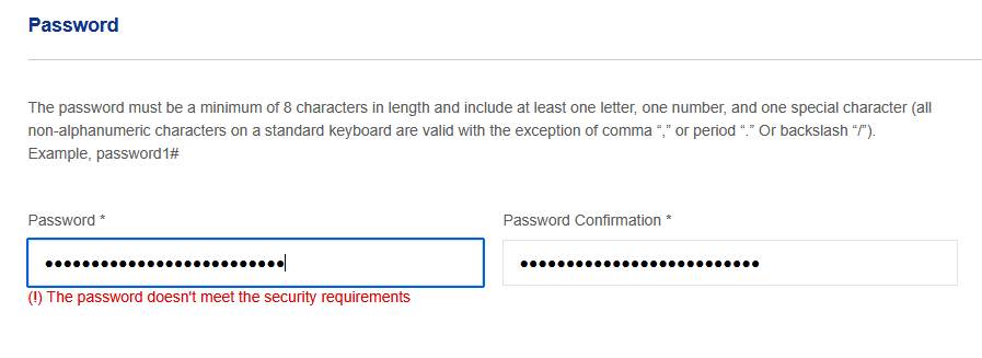 - Must contain at least 1 special character
