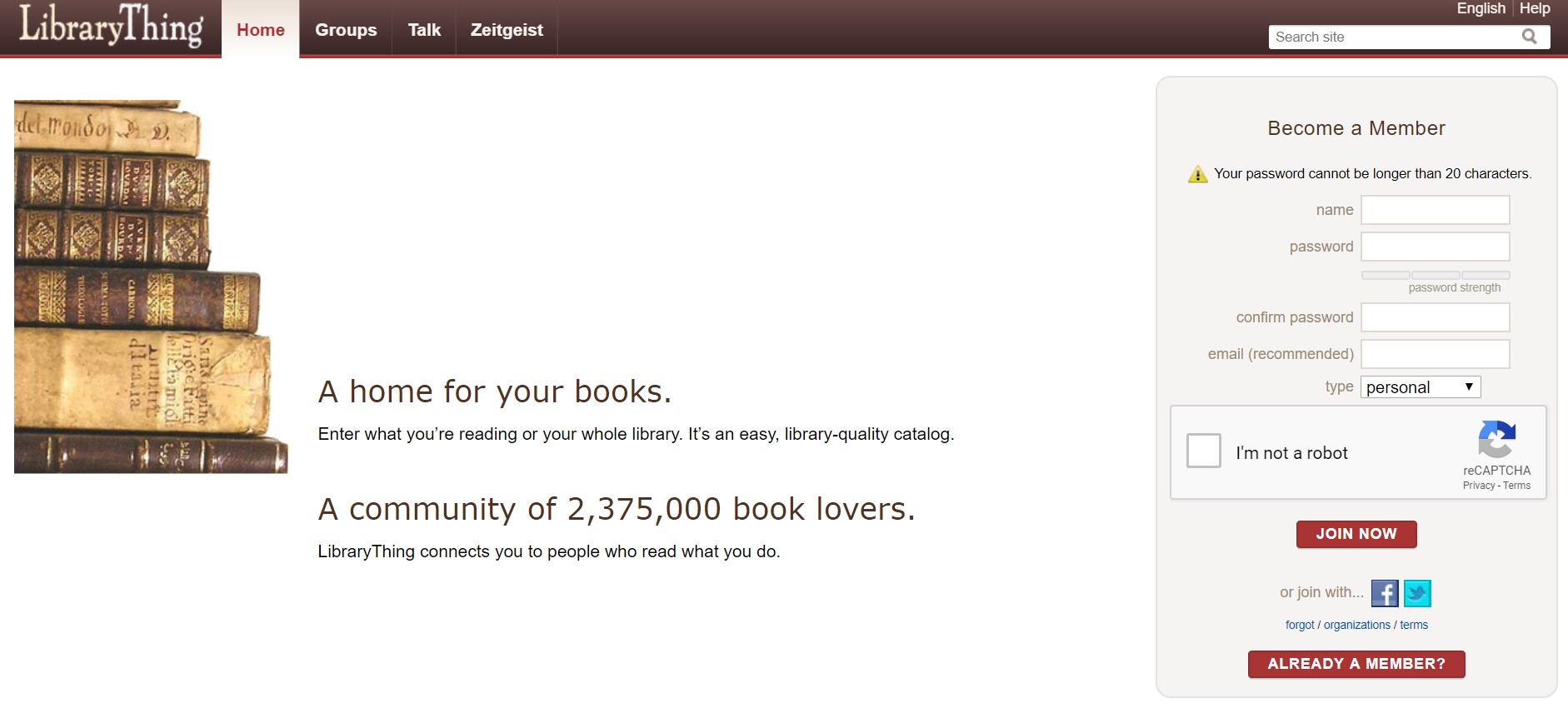 LibraryThing dumb password rule screenshot