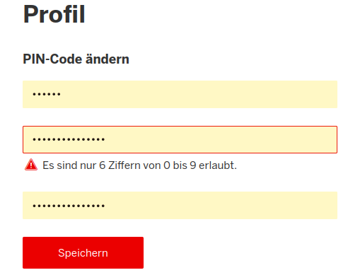 The username is the customer number, which is sequential and cannot be changed, currently 7 digits long for new customers. The password has to be exactly 6 digits long, only numbers allowed.