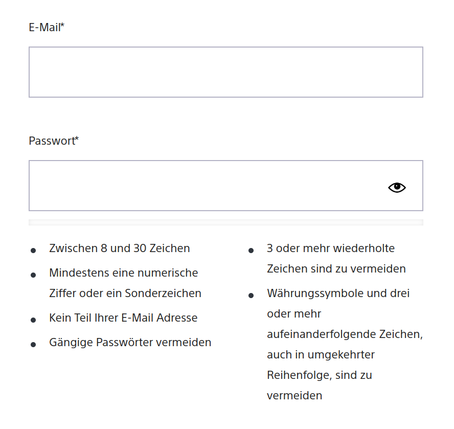 SONY dumb password rule screenshot