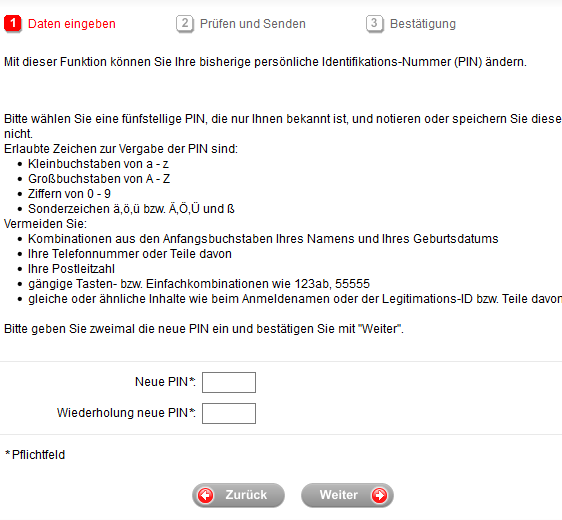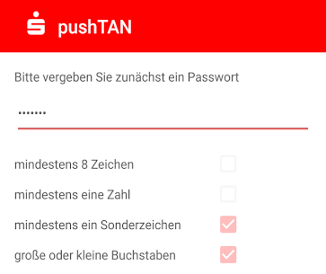 „Sparkasse“ is a group of banks which is pretty popular in Germany. It calls its passwords „PIN“ („persönliche Identifikations-Nummer“ — personal identification number), the rules are pretty horrific and its not even a number, even though it is called as such! Here is a screenshot from the branch where I am from (Jena, Germany), but since they have a central IT, I think it will be identical in other branches: