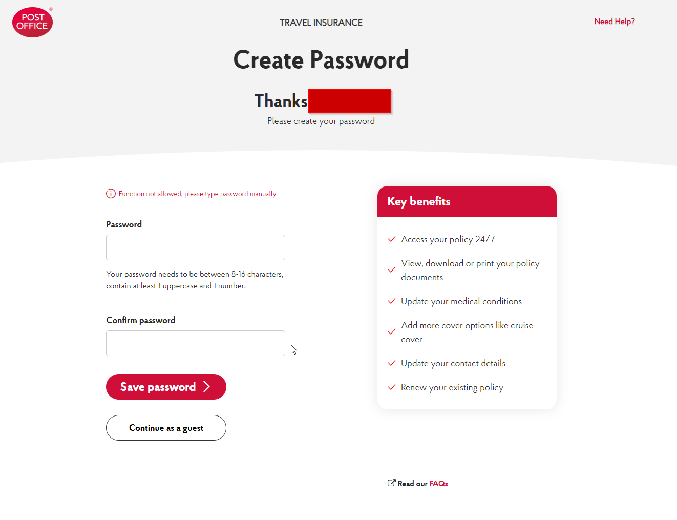 United Kingdom Post Office dumb password rule screenshot