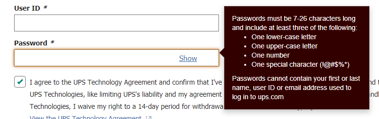 - NOT contain UPS user ID